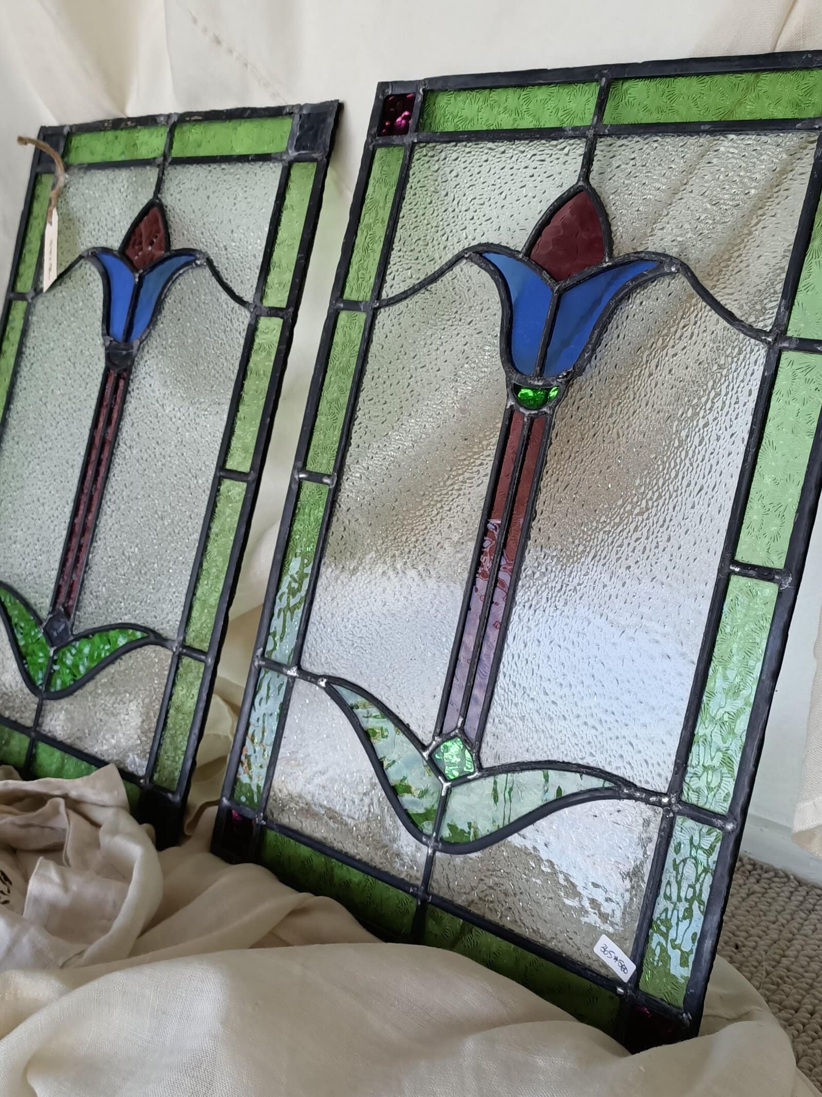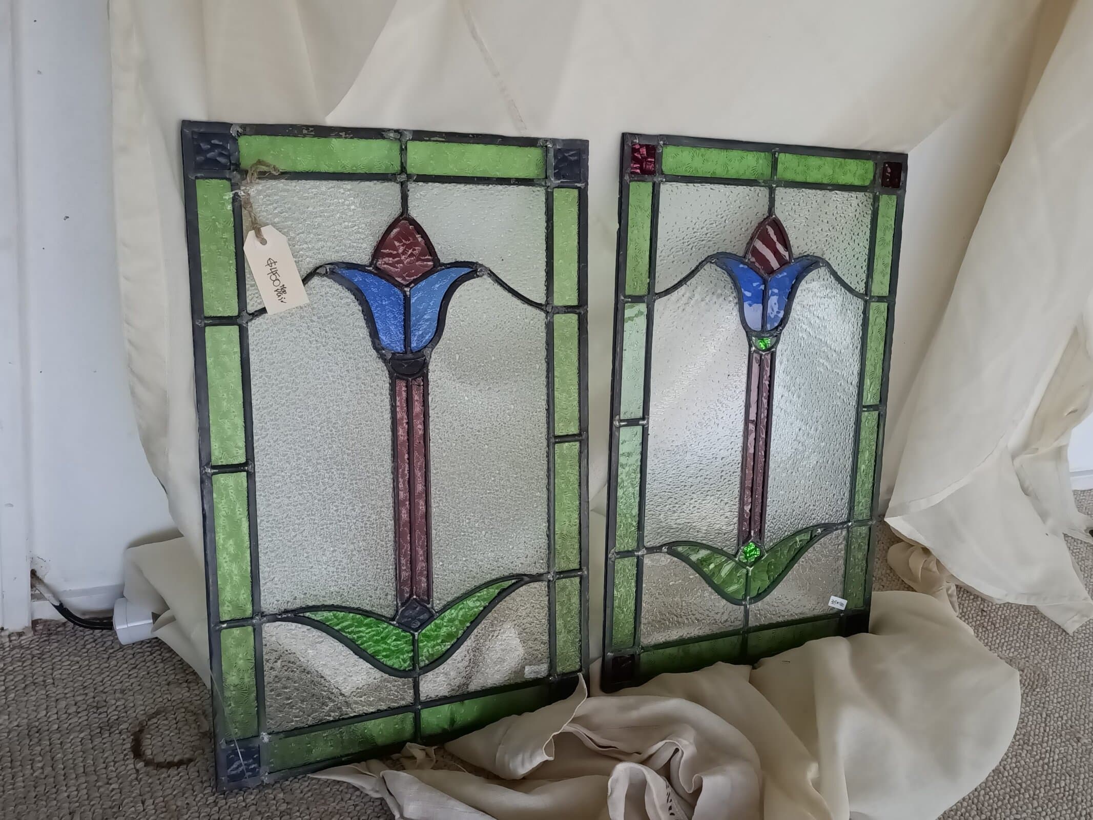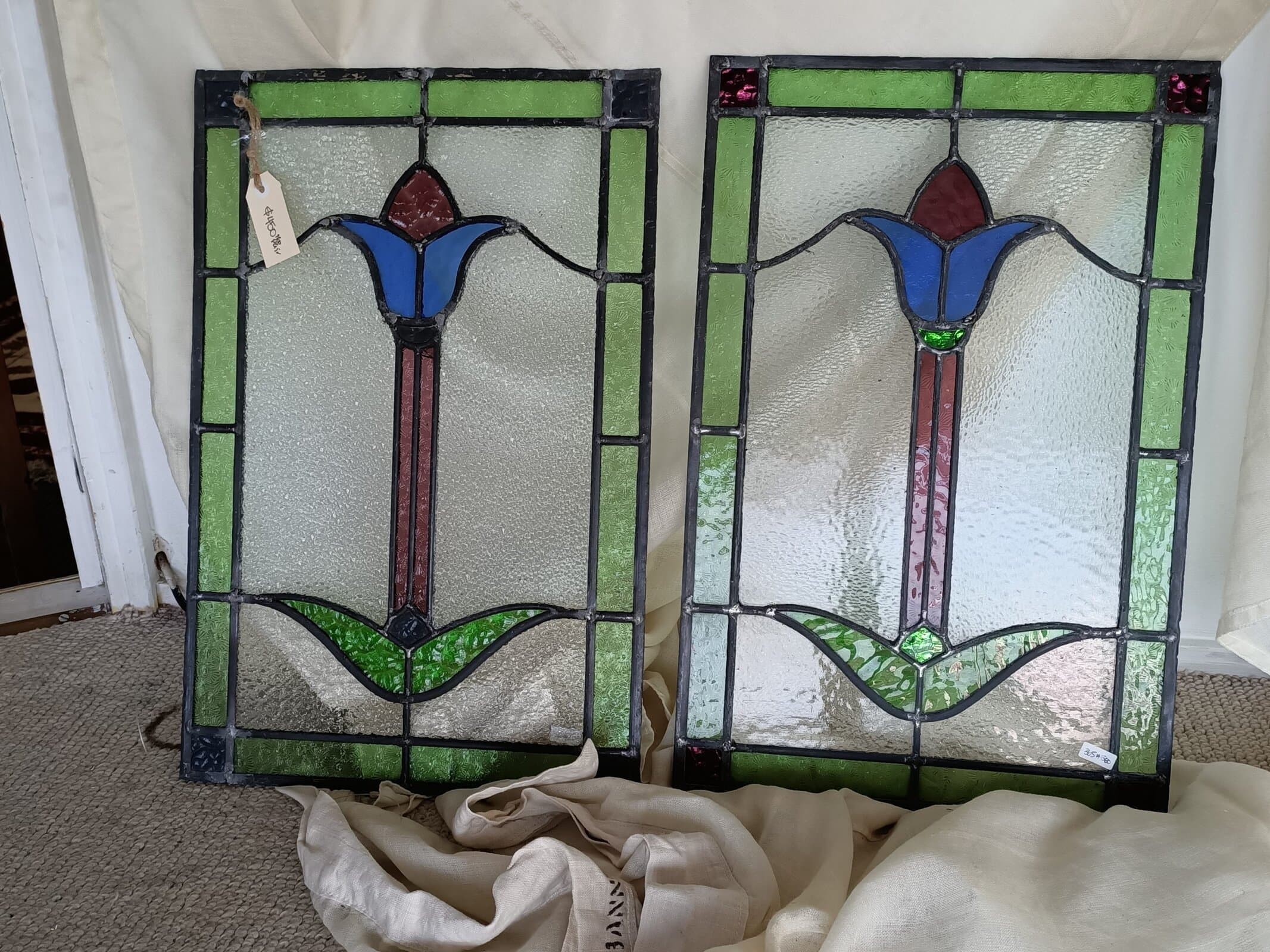 A pair of Stained-Glass Tulip panels
