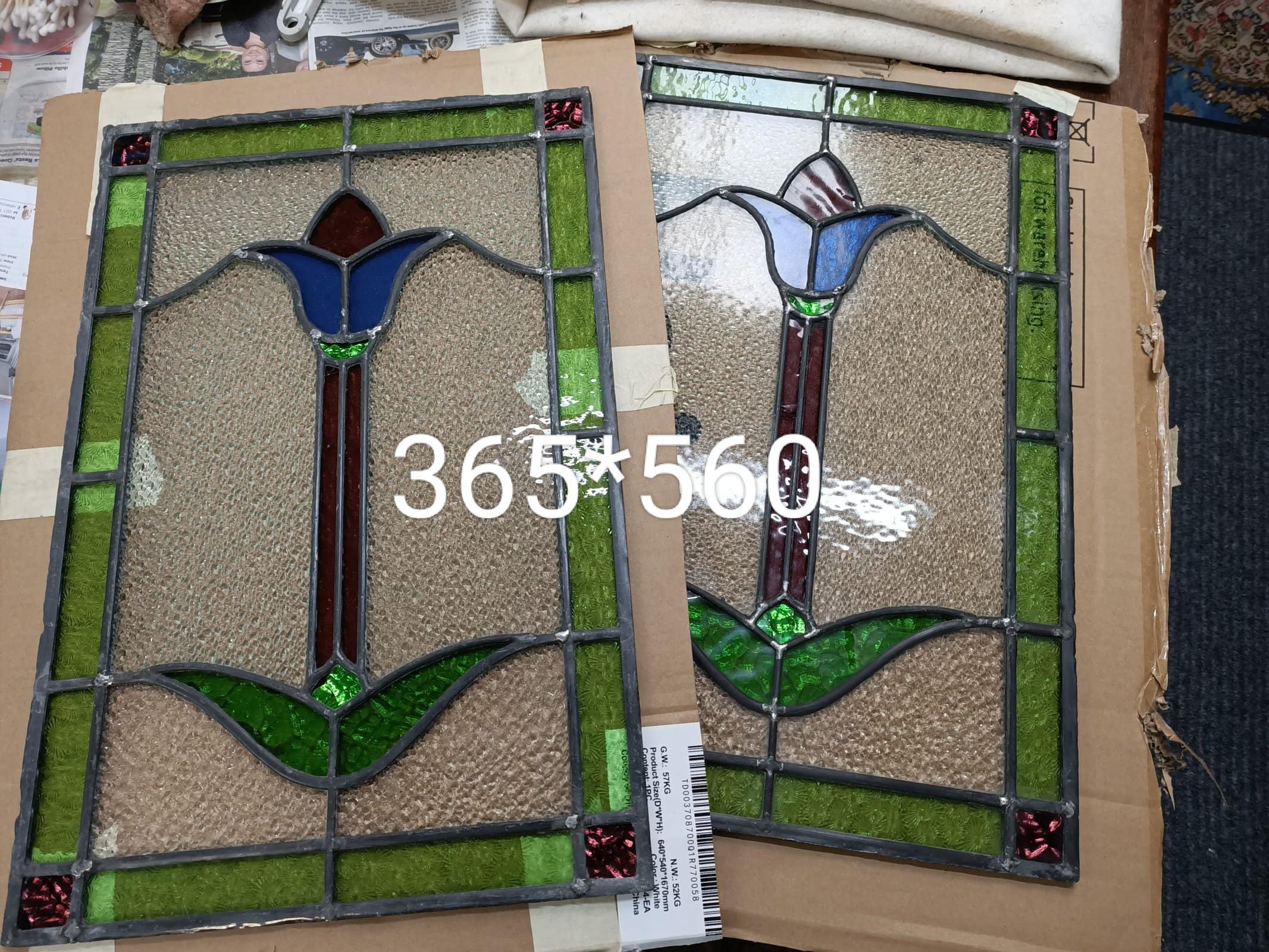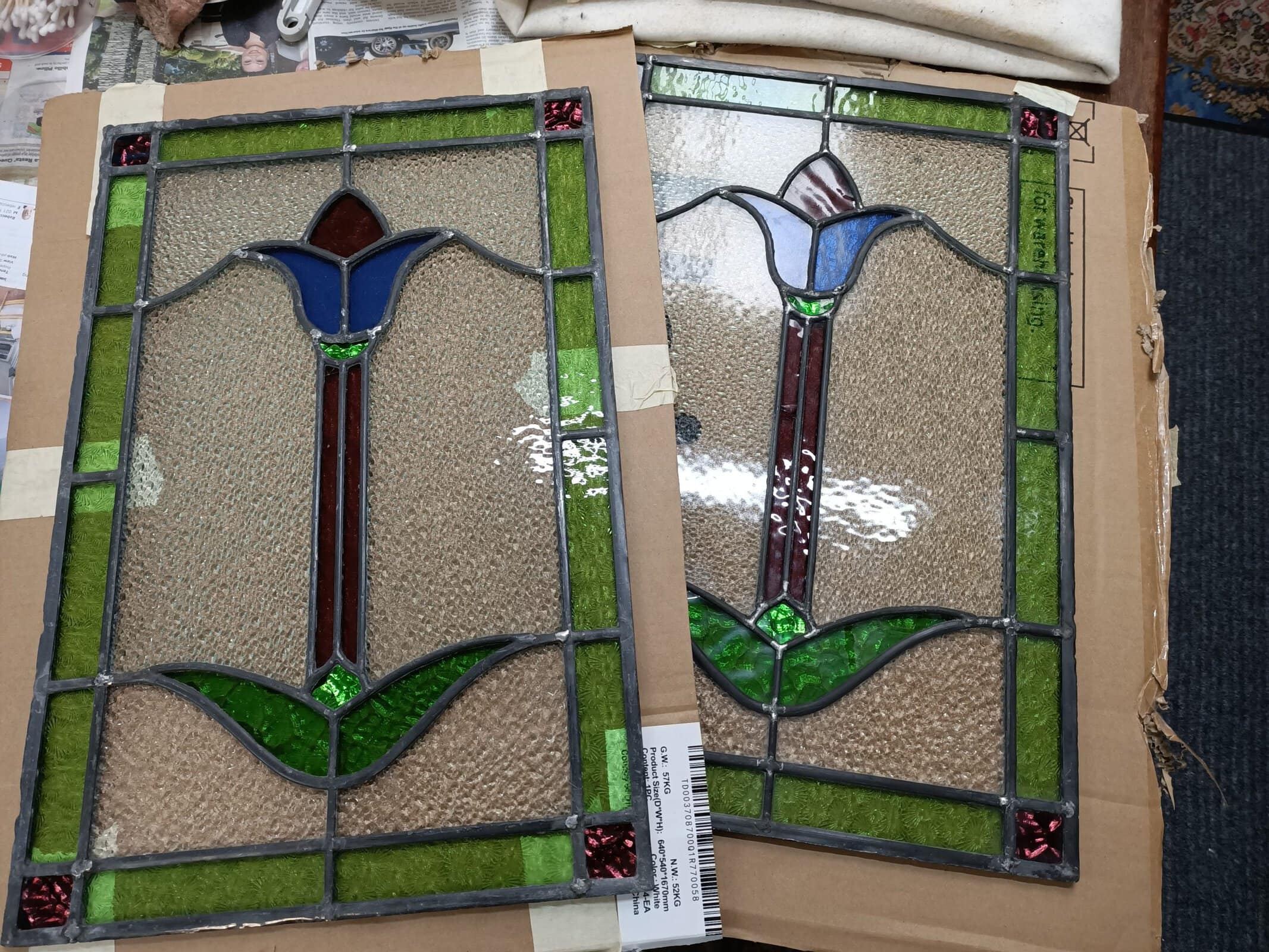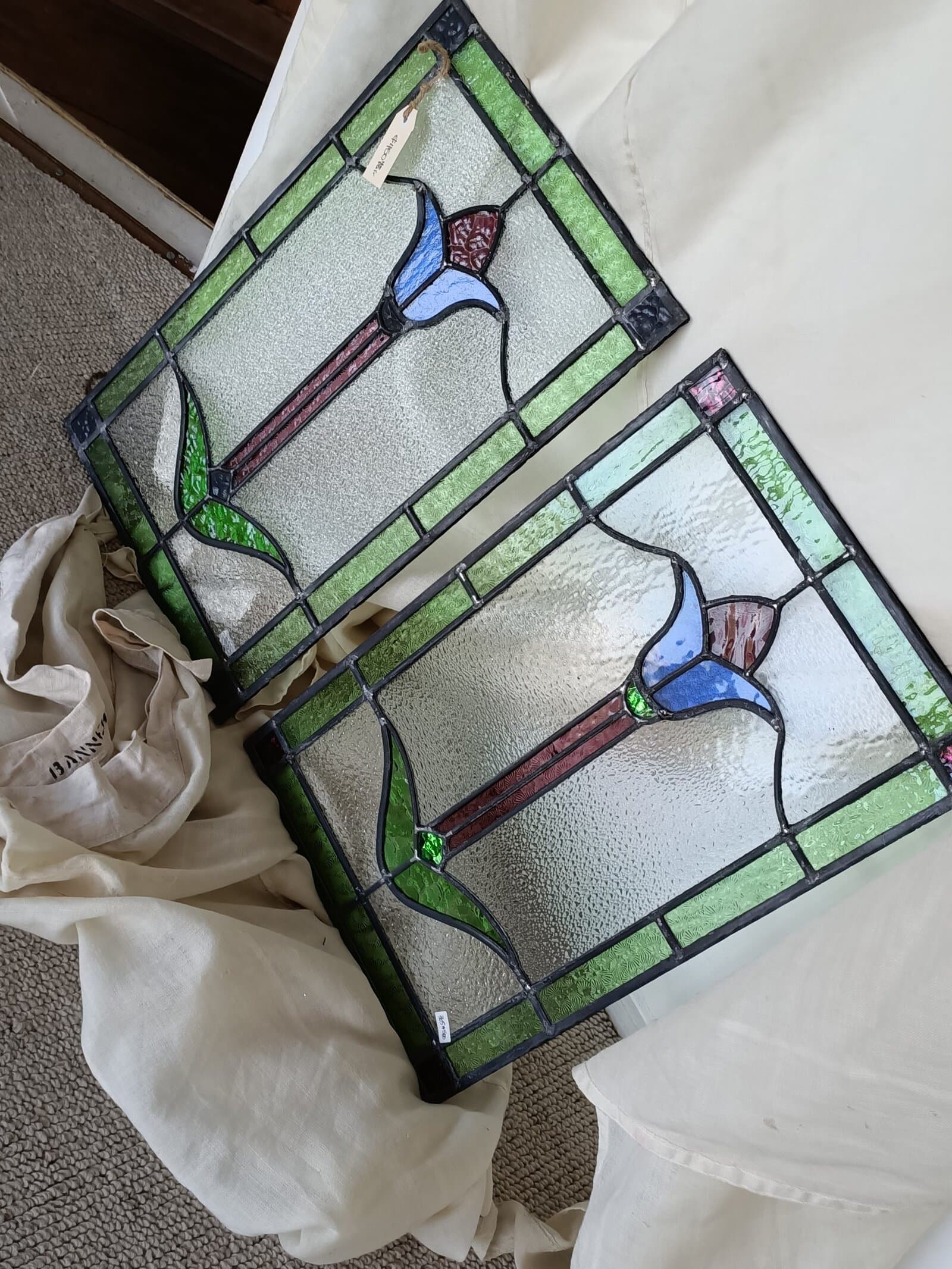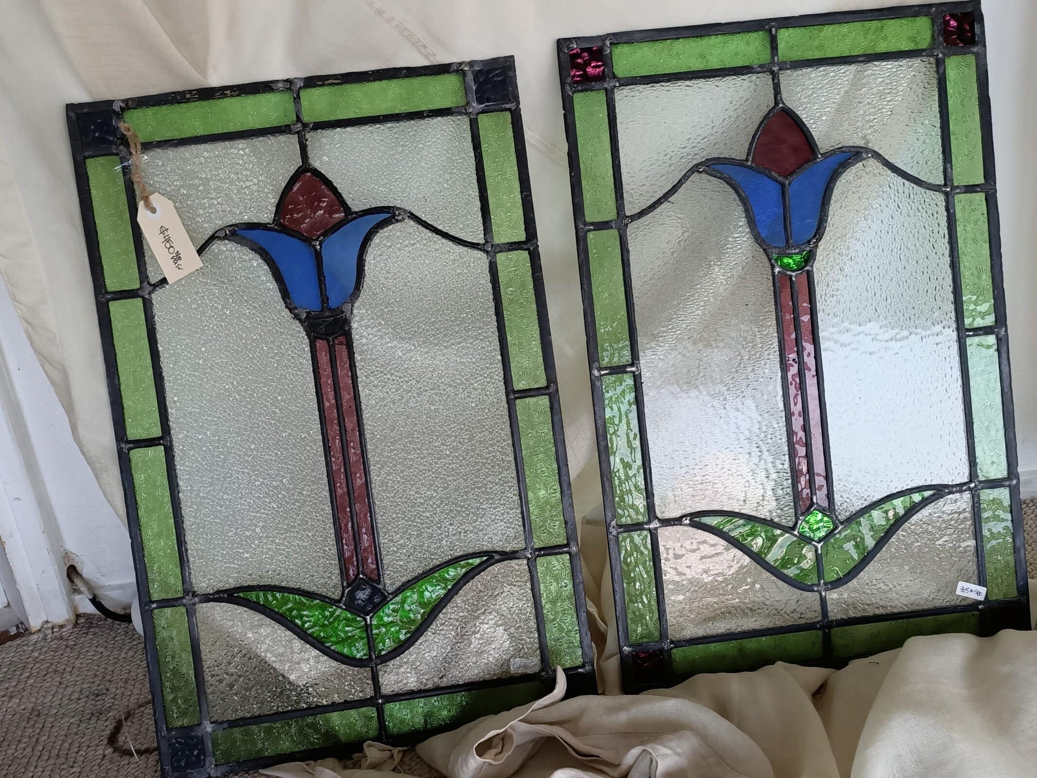 A pair of Stained-Glass Tulip panels