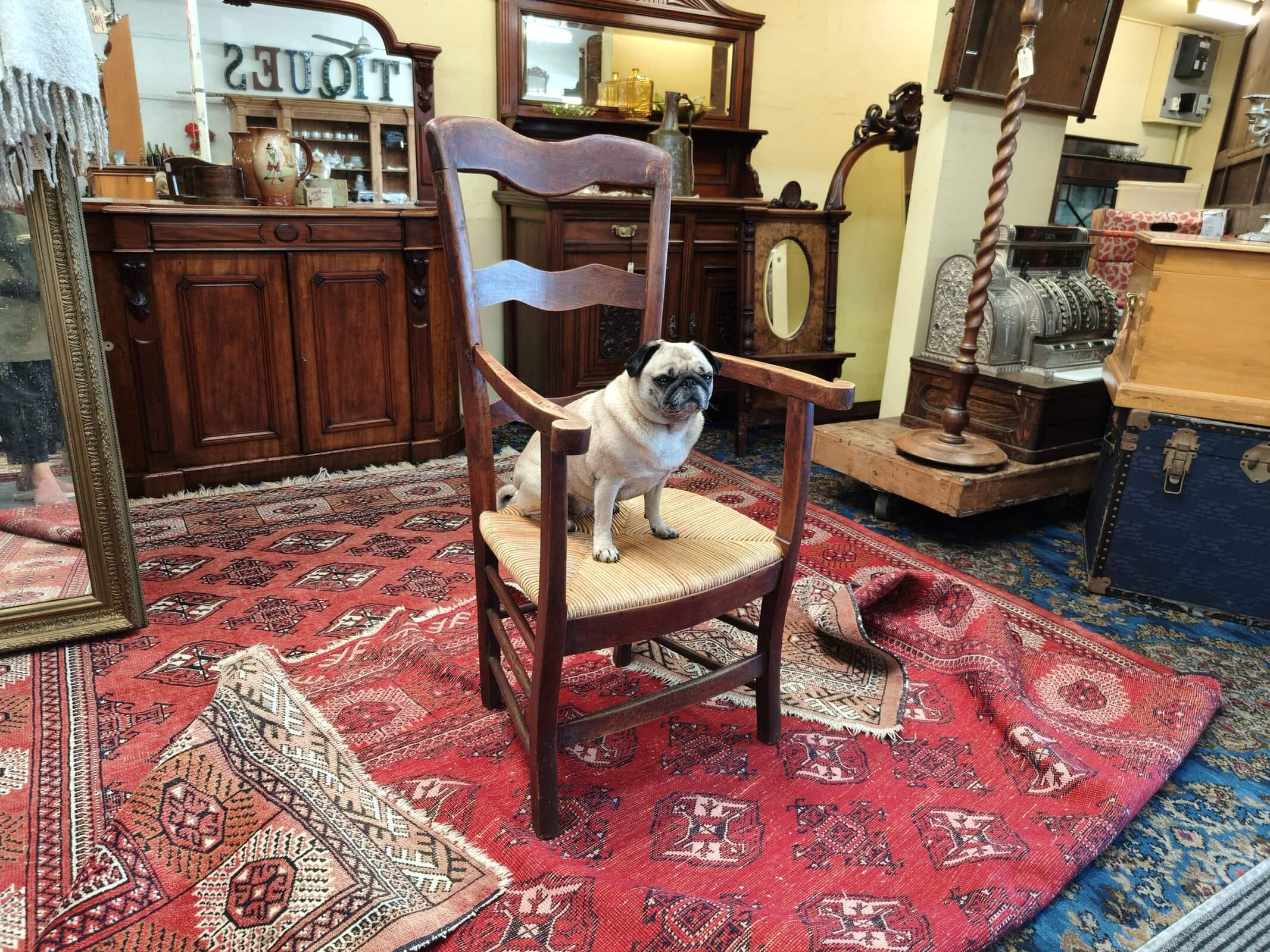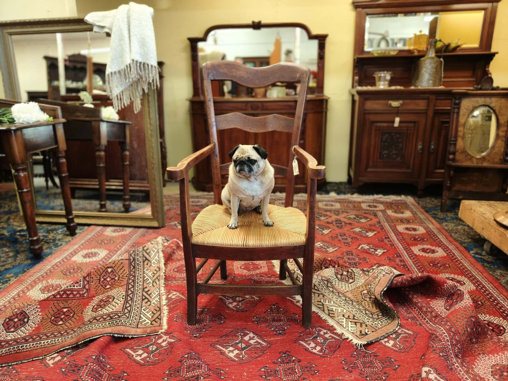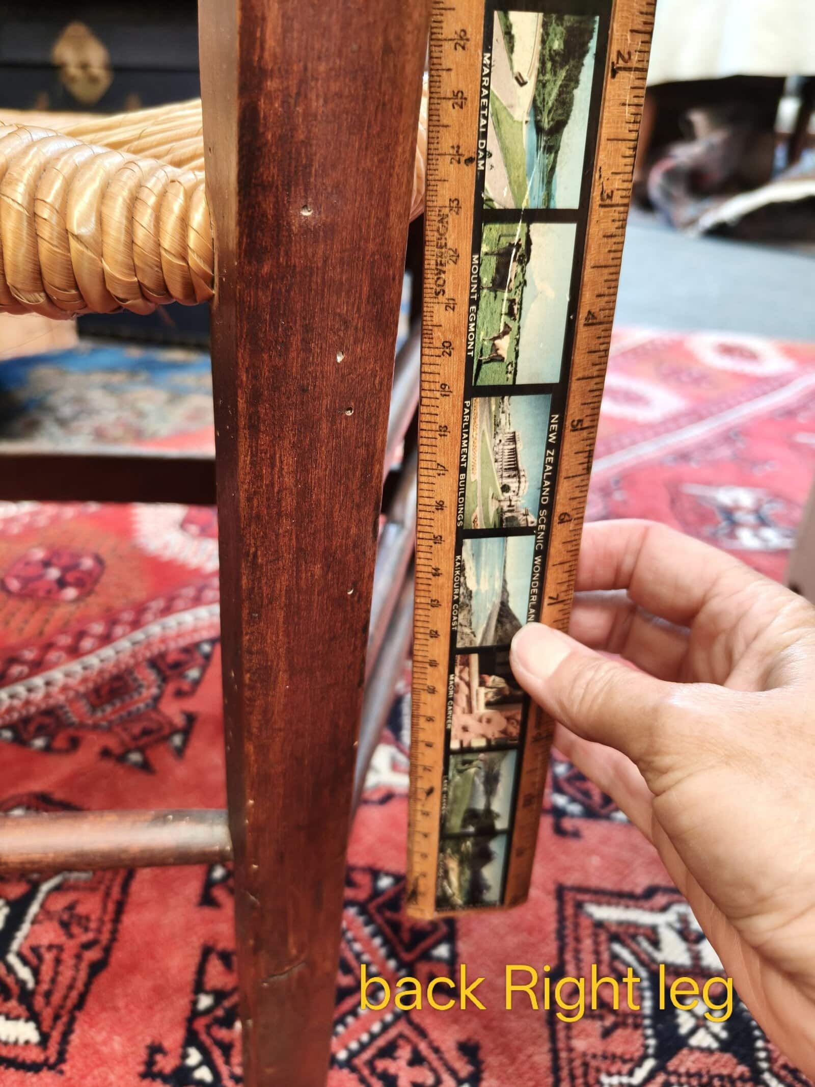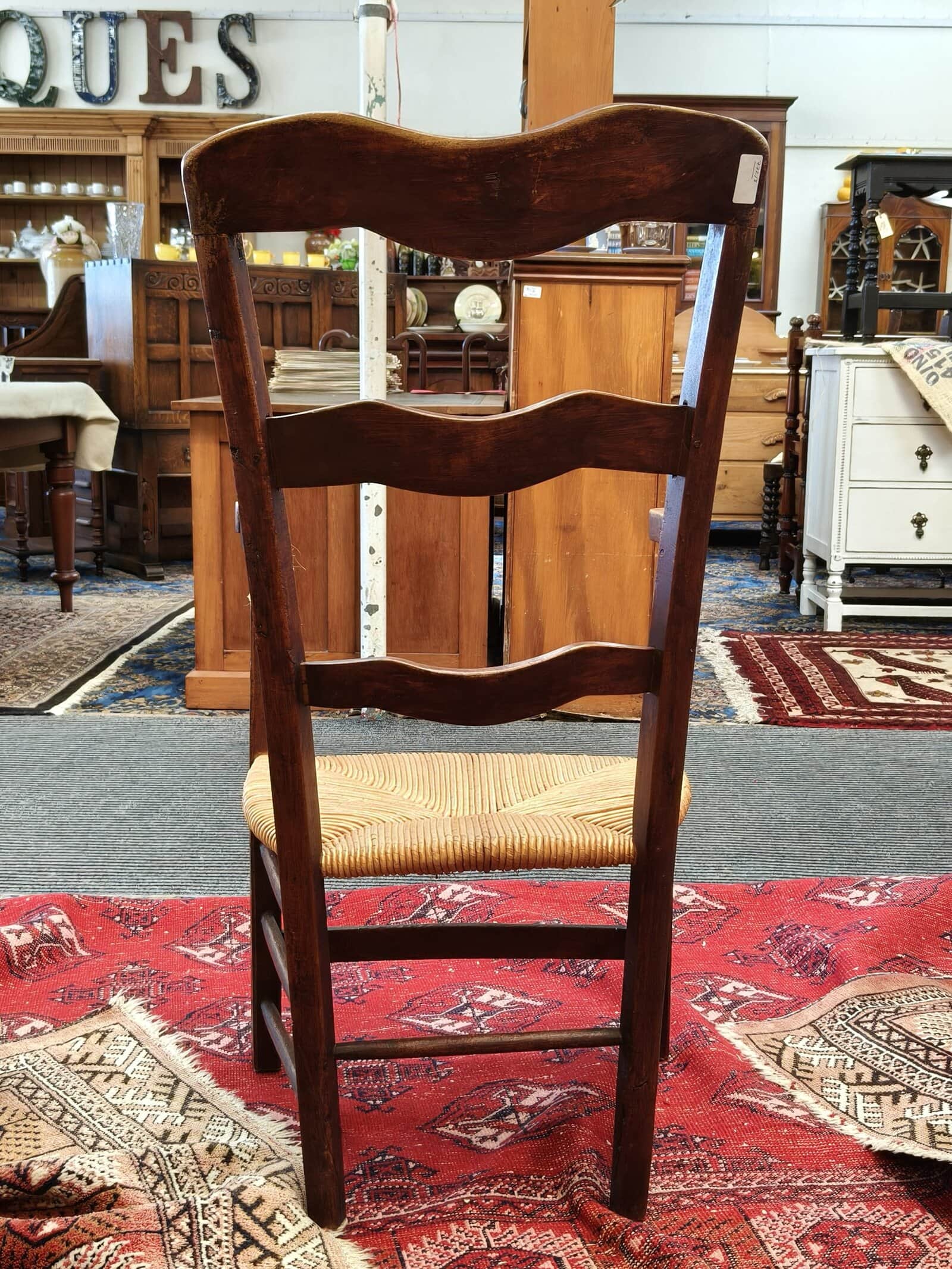 How would you be in 175 years? I think this rustic mid-nineteenth century chestnut carver chair is doing wonderfully for being nearly two hundred years old. French with rough roan stain, patina worn arms. Stretchers and structurally sound. A newer popout rush seat makes for a comfy sit. Some old bug holes in two legs as per pix, priced accordingly. Circa 1850.